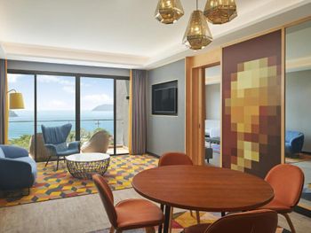 Отдыхали с подругой в начале марта 2025.Номер был с видом на море.Совет - бронируйте номер этажом повыше 5 ого, номер полностью соответствует описанию и фото. Просторный, кровать с отличным матрасом, каждый день пополнялись напитки в холодильнике( это бесплатно), чай, кофе и вода. Ванная комната - огромная), с гардеробом внутри непривычно, но в принципе удобно.Большое количество полотенец, меняли каждый день.Уборка на отлично. Сам отель достаточно новый, очень красивое лобби, приятный бар. В лобби в зоне самообслуживания есть холодильник, где можно бесплатно взять лёд для напитков. Завтраки в отеле очень многообразные- можно каждый день составлять новый, понравились суши, майонез с тунцом, вегетарианские креветки, джем из тыквы. Из фруктов всегда были арбуз( красный и желтый), папайя, дыня, ананас. Большой выбор разнообразной выпечки. Приятно , что когда приходишь на завтрак тебя персонал проводит лично к столику. Отдельно хочеться сказать про очень гостеприимный, приятный, вежливый , отзывчивый и улыбчивый персонал😃. На пляж можно дойти пешком( тропа между отелями) , или вас отвезёт багги.Что бы уехать с пляжа можно позвонить в отель и вас заберут). Все пляжи на Лангкави муниципальные.Пляж отеля нельзя назвать самым лучшим, по причине того , что они занимаются участок пляжа под деревьями, что далековато от берега и как раз напротив стоянки лодок, плюс ещё утром и вечер по пляжу катаеться трактор))) С одной стороны это минус, а с другой - ну где ещё такой пляж найдете, вносит свою изюминку в пляжный отдых))) Вместо лежаков отель предоставляет мешки с фасолью. А стоимость лежаков , если брать у других отелей - 50 рингит. Сама береговая линия длинная, можно спокойно, особенно в отлив дойти от начала до конца весь пляж Тенгах. В море иногда бывает кусачий планктон, само море мелковато. Останавливаться в отеле однозначно рекомендую.