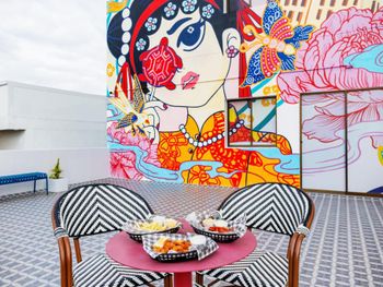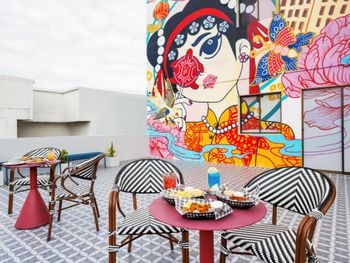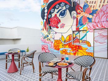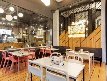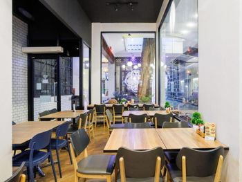Очень дорогое кафе в отеле. Завтраки до 10:00, но в 9:58 вся еда уже убрана - ничего не дают. Очень обижает такое. Немного слышно басы из баров с улицы по ночам.