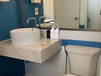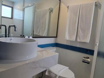 Мы прибыли на три часа раньше Чек ин и я забыл предупредить отель в сообщении. Нас заселили сразу, без ожидания. Персонал очень дружелюбный, сразу начиная с ресепшен. Супер удобная локация. Сразу у выхода из отеля есть кафе и рестораны с лучшими ценами на си фуд и прочее. В 2-х минутах хотьбы большой маркет Патонг Центр. Волкинг стоит в одной минуте хотьбы, но ночью не слышен грохот музыки в номере. На крыше чистый уютный бассейн, где тоже приятно посидеть в тишине. В номерах мебели, дверям конечно требуется ренновация. Но это компенсировано ценой и чистотой. У отеля собственная крытая просторная стоянка. Если вы берете байк или машину на прокат, то легко паркуетесь и транспорт круглосуточно под охраной, а вы спите спокойно, что никто не поцарапает. По такой низкой стоимости вы получаете максимум преимуществ и сервис. Один из лучших на Патонге по соотношению цена - качество. Смело бронируйте👍