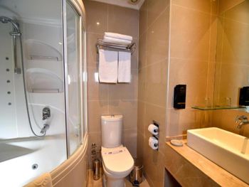 Серые полотенца, плохая шумоизоляция, неисправный старый фен (фен быстро нагревался и выключался, нужно ждать чтоб остыл). Нет подстаканника под зубные щетки. Нет стаканов в номере (не помешали бы).