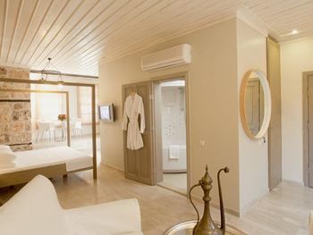 Все шикарные номера с видом на Средиземное море оформлены в элегантном стиле. В номерах есть кондиционер, ЖК-телевизор и собственная ванная комната с феном, халатами и тапочками. В числе удобств сейф. Некоторые номера располагают балконом, террасой и аутентичным камином. В отеле Alp Pasa также имеются семейные номера.