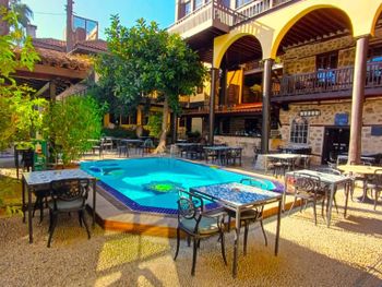 Красивый отель с внутренними двориками в самом центре Калечи. Много артефактов на территории.