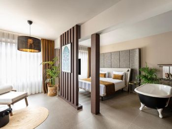 Очень аутентичный отель, хорошее месторасположение. Заселили раньше . Бронировали 2 номера, предложили на замену виллу из 2 комнат с общим залом. Вайфай работает отлично . Прекрасный завтрак . Парковка рядом