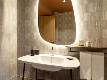 Серые полотенца, плохая шумоизоляция, неисправный старый фен (фен быстро нагревался и выключался, нужно ждать чтоб остыл). Нет подстаканника под зубные щетки. Нет стаканов в номере (не помешали бы).