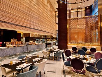 В отеле AlRayyan Doha с просторной зоной под открытым небом подают широкий выбор блюд интернациональной кухни. В знак уважения к заветным традициям Катара и местной культуре в этом отеле, подходящем для семейного отдыха, запрещено распитие спиртных напитков. В ресторане Mezzo в течение всего дня подают блюда и кофе. Крытая терраса ресторана напрямую соединена с торговым центром Mall of Qatar. Для быстрого заказа в ресторане Mezzo работает стойка Grab and Go. Гости смогут посетить лобби-кафе и кондитерскую Moda Lounge, или отведать закуски или чай в баре у бассейна. Во всех ресторанах сервируют эксклюзивный кофе Lamborghini.