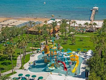 Классный детский бассейн с горками, мы детей за уши оттащить не могли. Пляж песочный. В любое время как у бассейнов, так и на пляже можно было найти место.