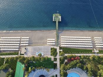 На территории есть холодильники с бутилированной водой. Все часы на территории показывают точное время с отклонением не больше минуты. Пляж большой, мелкая галька, вода очень чистая. Помимо шезлонгов есть отдельные шатры за деньги, ну и пирс, куда же без него.