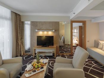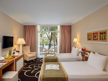 Великолепная архитектура, освещение и ландшафтный дизайн территории Отеля - просто эстетическое удовольствие! Внимательный, приветливый и доброжелательный Персонал Отеля! Идеальная чистота номеров , ресторанов, пляжа и бассейнов. Питание - очень -очень изобильно - и мясные продукты / говядина, ягненок, баранина/ и морепродукты / лосось, дорадо , сибас, крупные креветки/, огромный ассортимент сыров, фруктов, сухофруктов, орехов и сладостей и турецких и традиционных тортов, пирожных, желе , варенья -даже мед в сотах ! Все блюда нереально вкусные! Хочется отметить аккуратность и предупредительность персонала ресторанов и великолепную сервировку столов- текстильные скатерти, салфетки, идеальная посуда и столовые приборы -все идеально чистое и хорошего качества! Очень красивая, зеленая и ухоженная территория Отеля - цветы, топиарии , скульптуры, озера с Фламинго и Лебедями, Релакс зона с гамаками и чистейшим , тихим бассейном, Огромный центральный Бассейн , аквааэробика и веселые конкурсы, активная но ненавязчивая Анимация и прекрасные вечерние Шоу! Все это создает то ощущение Комфорта ,Спокойствия и Счастья, которое так ждешь от отдыха!