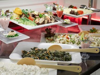 В ресторане отеля гости могут заказать разнообразные блюда. По запросу для гостей может быть предложено специальное диетическое меню. В баре представлен ассортимент напитков и закусок.