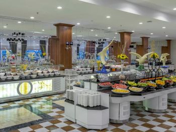 Питание. Очень разнообразное как для детей так и для взрослых, каждый день на ужин были блюда разной тематики (итальянская кухня, мексиканская кухня, гала-ужин с живой русской музыкой и отварными раками и т.д.). Всегда были свежие фрукты, овощи и зелень. Много десертов, в том числе национальных турецких сладостей. Помимо основного ресторана есть еще 4 ра-ля-карт, где можно поужинать, предварительно забронировав стол. Для именинника и гостей, проживающих в одном номере, бесплатно, для остальных - 10 долларов. Алкоголь не самый лучший, от 5* ожидалось лучшего, но найти что выпить можно.
