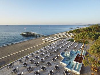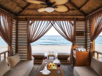 Так как отель большой (на 2500 гостей), мы арендовали Павильоны (платная услуга 140$ на весь день). Там отдельное обслуживание и целый день на море. Очень понравилось и обслуживание и Павильон.