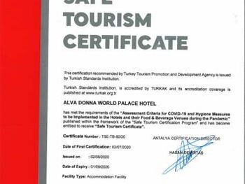 Почувствуйте себя знаменитостью благодаря великолепному сервису в Dobedan World Palace Hotel \'\'Ex Brand Alva Donna World Palace \'\'Отель Alva Donna World Palace с частным пляжем, открытым и крытым бассейнами располагается в городе Кемер. Гостям предоставляется бесплатный Wi-Fi.