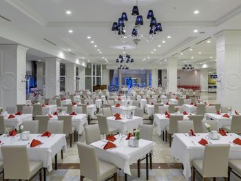 Питание не понравилось, одно и то же, мало морепродуктов, рыбы, все понамешано тазами, мало молочки на завтрак,соков натуральных. Еды много, но все приедается на 2й день и вообще мало, что было вкусно. Десерты никакие ( ну и слава Богу)) Номера скромные, в основном все боковые, виды из них "ни о чем". В бассейнах много хлорки, но с таким кол-вом людей это и не удивительно( в СПА, крытый бассейн, зайти вообще не возможно. )