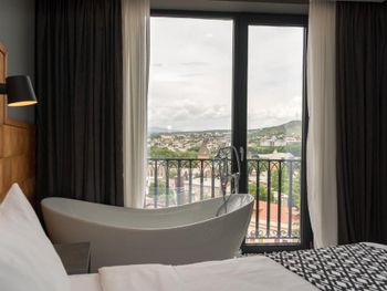 В номере холодно, обогревателей нет, общий кондей не спасает, вылезать ищ душа - страшно Завтрак в целом норм, тем более с таким видом, голодными не останетесь, но холодные зачапури - боль Номер меньше чем кажется по фото Не все такси могут подъехать прямо к отелю (крутой уклон) Бар ( или ресторан ) на крыше - ни разу не застали работающим (правда пытались только вечерами). Чтобы очень обидно, выбрали этот отель в основном по этому признаку. Но спасибо, что хотя бы крыша была открыта все время- так что придя в полночь в отель можно было посидеть там с бутылкой вина и шикарным видом). Ужасная слышимость из коридора - и уборшицы совсем не церемонятся по утрам убираясь в соседних номерах((