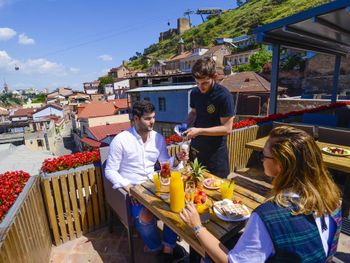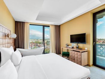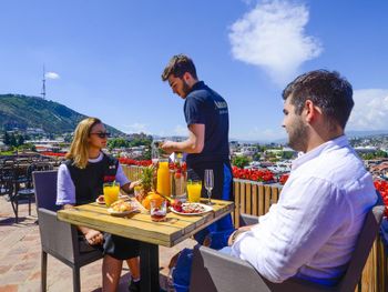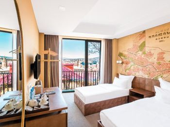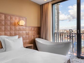 Современный, но отлично вписывающийся в местный колорит, отель. Чистота, комфортный номер с огромной террасой с видом на город, вкусный завтрак с блюдами европейской и грузинской кухни, замечательный, беспредельно доброжелательный и гостеприимный персонал.