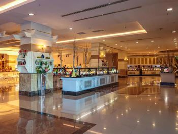 Внутри отеля есть магазины,например возле главного ресторана. Цены бешеные и пытаются обмануть покупателя. Я зашла купить ребенку шлепки(на шлепках цена 250 лир)что то вроде этого. А продавец пробил их почти за 500 лир. Я спрашиваю почему,он говорит система так показывает,так будьте добры тогда цены поменяйте на товаре. Продавец просто отвернулся и не стал мен слушать,мужу моего ответил он тоже самое. Соответственно и за принципа я не купила. У нас в Германии дешевле цены,чем он там продает