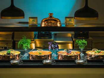 В ресторанах подают блюда по меню и по системе "шведский стол". Гости также могут заказать напитки в элегантном лобби, где играет живая фортепианная музыка.