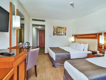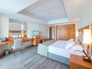 Остановились в отеле семьёй. Место просто супер, есть все для отдыха с детьми- аквапарк, анимация, вкусное питание, мороженое 24 часа и конечно же моречко. Пешком 5минут к морю, а кто с маленькими детками путишествует можно воспользоваться специальным транспортом предоставляемый отелем. Персонал очень комуникабельный, все просьбы решаются мгновенно. Цена качество хорошее.