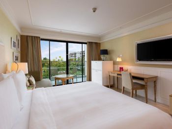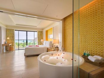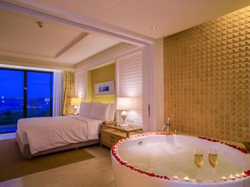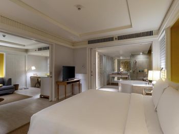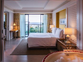All with spacious living areas and pool or mountain views, rooms at Amari Hua Hin - SHA Certified are tastefully furnished with contemporary decor. Each well-appointed room comes with a flat-screen satellite TV with international channels and a DVD player, a minibar and a safety deposit box. Slippers and an electric kettle are also available. Free toiletries, a hairdryer and a bathrobe are included in an en suite bathroom.