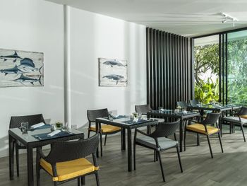 Dining options include the Mosaic, Coral Lounge, where fresh seafood specialities are served.