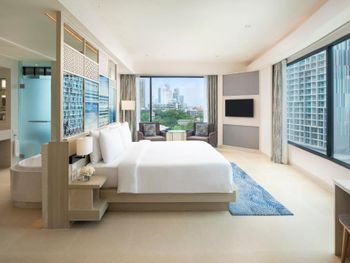 Расположение хорошее, есть дополнительно трансфер на гольф каре до отеля OZO, оттуда очень удобно добраться до Терминала 21.