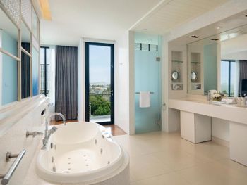 Во всех номерах и люксах есть французские окна или собственный балкон с видом на великолепный залив. В номерах с теплым освещением постелен деревянный пол. В числе удобств спутниковое телевидение и мини-бар. Предоставляются тапочки. Ванная комната в номере укомплектована бесплатными туалетно-косметическими принадлежностями и зубными щетками.