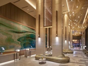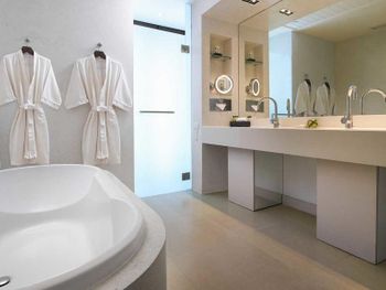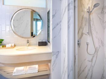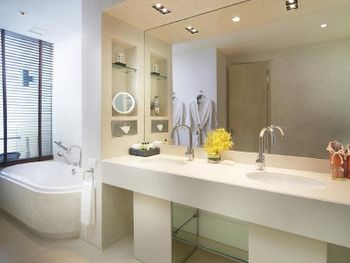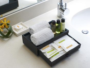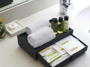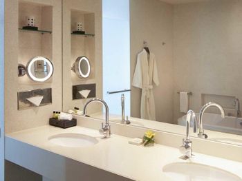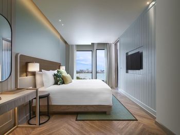 All guest rooms and suites feature panoramic floor-to-ceiling windows or a private balcony overlooking the glittering bay. Fitted with wooden floors and warm lighting, they come with satellite TV, slippers and minibar. En suite bathrooms includes free toiletries and toothbrushes.