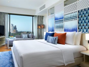 Расположение хорошее, есть дополнительно трансфер на гольф каре до отеля OZO, оттуда очень удобно добраться до Терминала 21. Отличный персонал. Размер номера просторный. Из некоторых номеров хороший вид, даже выходящие на сторону отеля Holiday Inn. Очень хорошие завтраки, огромный выбор всего. Территория и бассейн хорошие, горка очень даже ничего. Сделали комплимент на день рождения, приятно удивили.