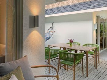 -Очень плохо организован трансфер. С трудом нашли стойку отеля в аэропорту прилета. Багаж в отель привезли с опозданием на два часа, поэтому вместо того, чтобы сразу переодеться и пойти условно купаться, ждали чемоданы. Об времени обратного трансфера узнали поздно вечером дня перед вылетом. -Брали виллу с двумя спальнями и бассейном. На сайте размер номера вроде большой, а по факту две маленькие комнатушки, где стоит кровать и небольшой стол. А вся остальная площадь это территория виллы где бассейн и большая беседка. - море было ничего, но вход в море на против вил очень плохой! Прям с берега дно усыпано обломками кораллов и неприятной донной живностью. И сильно ощущается отлив. Ходишь в воде по пояс - На острове очень очень много всякого гнуса. Ночью спали с закрытыми окнами, но утром дети просыпались покусанными мошкой и комарами. И на острове огромное количество ворон!!!! Это самая главная птица острова и они достаточно агрессивны - Персонал плохо обучен выполнять свою работу и видимо их обучением никто не занимается. Мы конечно делали замечания. Но видимо жаркая погода на них плохо влияла. - Ну и самое главное это отвратительное питание в главном ресторане! Завтрак обед и ужин были по сути одинаковыми каждый день, выбор блюд очень маленький и так называемая европейская еда очень невкусная. Очень маленький выбор фруктов. Более менее была вкусная индийская еда, но видимо только потому, что шеф повар был индус. New hotel. Accordingly, everything is new and seems to work. Good weather, but this has nothing to do with the hotel. Nothing else, I think Didn't like - The transfer was very poorly organized. We had a hard time finding the hotel counter at the airport upon arrival. The luggage was delivered to the hotel two hours late, so instead of changing clothes and going swimming, we waited for our suitcases. We found out about the return transfer time late in the evening of the day before the flight. - We took a villa with two bedrooms and a pool.