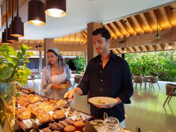Для гостей сервируется завтрак «шведский стол», континентальный завтрак или халяльный завтрак. При RAAYA By Atmosphere - Premium All Inclusive with Free Transfers работает ресторан, где подают блюда итальянской кухни, блюда ближневосточной кухни и блюда азиатской кухни. По запросу для гостей приготовят вегетарианские, безлактозные и халяльные блюда.