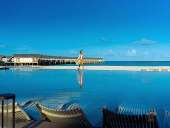 Вилла с бассейном на берегу понравилась. Считаю, что интереснее вилл на воде. Остров хороший. Приятно прогуляться по пустынным прекрасным пляжам с остановками в удобно расположенных ресторанах. Особый привет египетской команде в главном ресторане - профессионалы. И малый ресторан на севере острова - супер приятно там было - красивый вид, мало людей, внимательное обслуживание. В общем спасибо!
