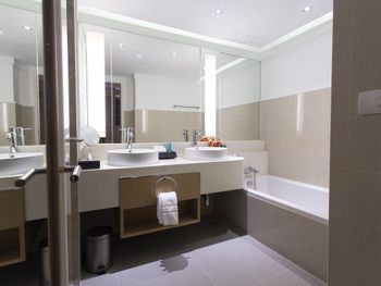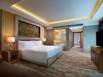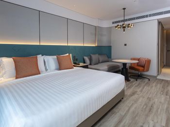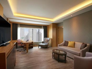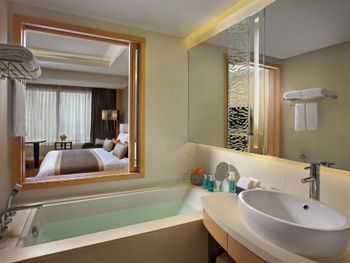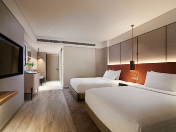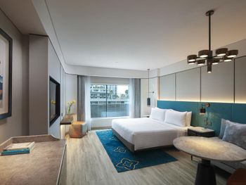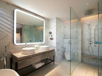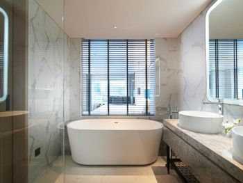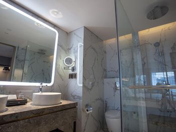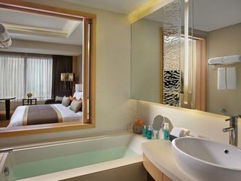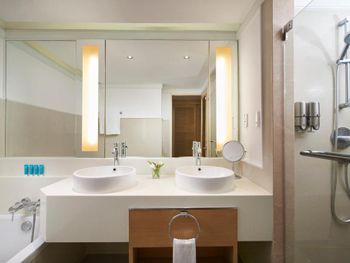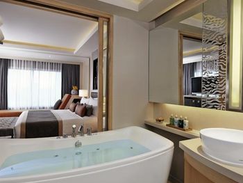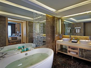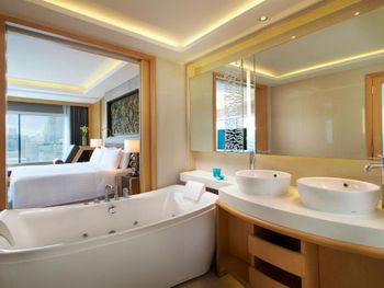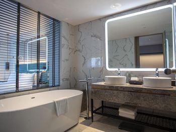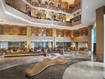 Отель полное разочарование,не уровня 5 звёзд,персонал груб и некачественно выполняет свои обязанности,очень сожалеем что взяли номер в данном отеле полагаясь на отзывы здесь.Мы с мужем приехали в отель в 15:00,после 20 минут в очереди к ресепшн и ещё дополнительных 30 минут регистрации сотрудник сообщил,что наш номер ещё не готов (а регистрация заезда то с 14:00) и предложил подойти ещё через час ( то есть погулять до 16:30!!!) либо занять номер классом пониже (с 2 отдельными кроватями),но стоимость за уже оплаченный вернуть сказал не смогут.После 9-ти часового полёта и 50 минут регистрации сил ждать ещё час не было и мы были вынуждены согласиться.Когда поднялись в выданный номер, поняли что пароль от wi fi не работает,уж не знаю как за 30 минут регистрации сотрудник отеля мог так ошибиться,это же моя фамилия.Также в номере не было полотенец,шампуня,геля,воды. Мы попытались дозвониться по телефону из номера,но в течение 10 минут телефон никто не взял, ответ был только по линии ресторана.Пришлось спускаться с 24 этажа на 1 и решать эти вопросы,на что ушло ещё 20 минут. Полотенца принесли через полтора часа.Ванна сделана из пластика,выглядит очень дёшево. Фен в номере с трещиной,её заклеили скотчем!!! В холле на 24 этаже ковровое покрытие откровенно грязное и в пятнах.Депозит списали за неделю до въезда,хотя номер был отменяемым в этот период. По завтраку: хочу отметить,что с выпечкой в отеле плохо,мало и не вкусно./The hotel is a complete disappointment,not a 5 star level,the staff is rude and poorly performing their duties,very sorry to have taken a room in this hotel relying on the reviews here.My husband and I arrived at the hotel at 15:00,after 20 minutes in line to the reception and an additional 30 minutes of check-in, the employee said that our room is not ready yet (and check-in is from 14:00) and offered to come back in an hour ( that is, walk until 16:30!!!