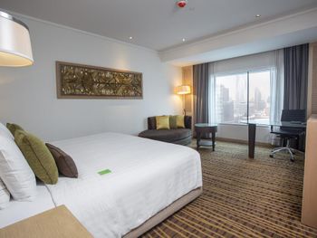 Отличное расположение, выходишь из отеля и попадаешь в настоящий Бангкок. Рядом станция метро, что позволяет добраться до аэропорта быстро и без пробок. В лаундже отличные коктейли, закуски, можно покушать и отдохнуть. Очень удобный матрас!