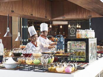 Гостям клубных номеров и люксов предоставляется эксклюзивный доступ в клуб Siraa с индивидуальным обслуживанием, ежедневным завтраком, вечерними напитками и питанием премиум-класса. Кроме того, к услугам гостей стилизованный под рынок ресторан азиатской кухни Amaya Food Gallery, работающий в течение всего дня. В изысканном итальянском ресторане Prego можно заказать блюда острова Самуи со свежей пастой, а в роскошном винном баре Italthai Cellar предлагают широкий выбор вин и напитков со всего мира.