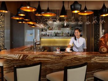 Отсутствие ужина по меню в главном ресторане (были предложены только сет предложения за 1600 бат на двоих), маленькие номера, отсутствие русских каналов тв, аудио техника и будильник под IPhone предыдущих поколений (до 4S), не большой выбор блюд по рум сервис меню и не приемлемая на вкус пицца и паста. Во время ланча в кафе Cascade в омлете попался чёрный волос.... извинились, из счёта исключили, НО.... В месте локации нет ни одного нормального ресторана или кафе, одни бургер кинги и макдаки, уличные макашницы.... Отель, на мой взгляд не стоит заявленных денег (8,5 тысяч рублей в сутки), реальный уровень 3-3,5 звезды с оптимальной ценой 2-2,5 тысячи бат (4-4,5 тысяч рублей) в сутки P.S. Возврат депозита осуществлён через 1 месяц, после выезда, вместо заявленных 7 дней.....