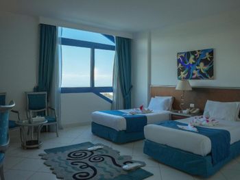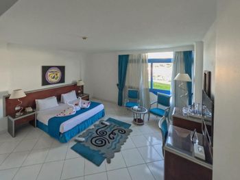 Скажу сразу я не сноб и не ханжа.Хочу по земле как и все. Решил первый раз в жизни поехать в отель 5*. Отель не 5* а средняя 3* В Хургаде 3 и то по интереснее будут. На чем с того что в отеле очень много комаров. Они везде но с ними пассивно боряться. Номер. Частичноя комплектация. Убирались относительно не плохо. 1) Холодильник не работал. Просили заменит так и не заменили. 2) Разеток много, работали 2 А возле кровати вообще не было провода торчали. 3) Да стулья грязные замызганые в пыли и в пятнах. 4) Ванна грязная в каких то чёрных полосах. Мебель старая по ушатана. Пляж грязный в бочках в мусора. Вход в море песчаный но, до глубины вам придется идти далеко метров 300-400( Кто поедет с детьми тем хорошо.) Бармен на пляже в жилетке голубой он грубый и вымогал денги. Не наливал что хотели. Анимация была но слабенькая. В целом это средняя тройка с большой натяжкой.