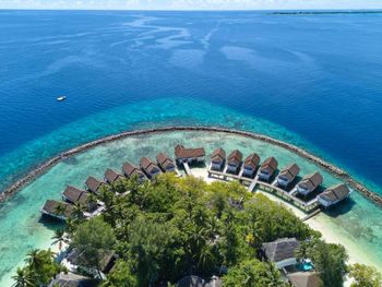 NEVER go here. The hotel will completely destroy all the best impressions from heavenly Maldives because it\'s surrounded by a very high wall! The whole island on all sides! You cannot enjoy the vastness of the ocean here. You cannot enjoy swimming in the ocean. You cannot even make beautiful photos. – All because of the sand – bag wall that about 1.5-2 meters above the water. Water in the pool was dirty – really dangerous for swimming. The food was very average – even during the NY dinner the variety offered was pretty poor. Dive center is very poorly organized: there were always 15- 30 minutes delays in the departure of the boat for diving.