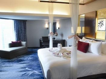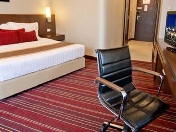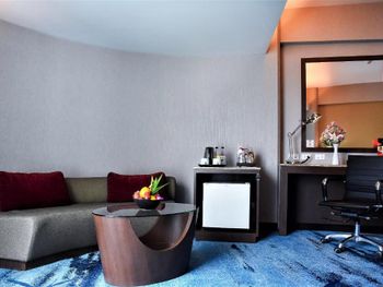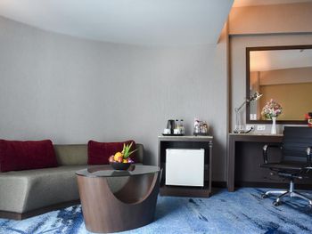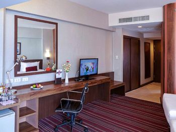 Номера отеля обставлены яркой мебелью. В них в вашем распоряжении кондиционер, плазменный телевизор и большой мини-бар. В отделанных мрамором ванных комнатах предоставляются туалетно-косметические принадлежности.