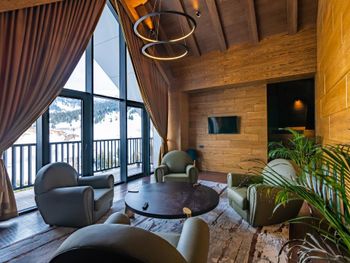 Отличный завтрак, вещи занесли, на просьбы отвечали по телефону, и в целом быстро, баня , хамам, бассейн включён, чисто, напротив подьемников. Даже машину откопали)