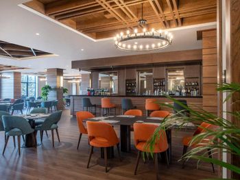 Большой красивый отель с бассейном и сауной. В прокате можно использовать шкафчики для хранения и сушки снаряги. В двух шагах от нижней станции подъемника. Хорошая кухня в ресторане. Ресепшн и рум сервис, сотрудники в прокате делают свою работу хорошо.