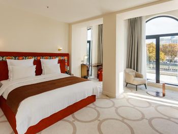 Шикарный отель (мрамор, дизайн, вычурная мебель, вид на Куру, близость основных турмест, БАССЕЙН !!! на крыше, шампанское ? на завтраке unlimited), но лучшие его времена позади. Требуется реновация