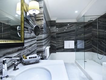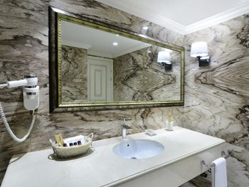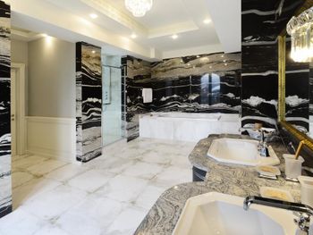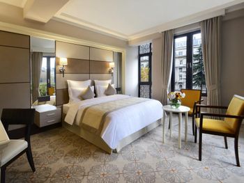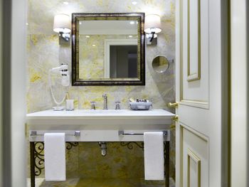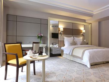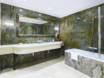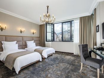Мы жили в историческом здании, номера там потрепанные временем и маленькие, на 5 звезд не тянут. Отопление идет из центральной вентиляции, включается каждые 20 минут где-то, и откуда постоянно несло табаком. Причем, когда вентиляция включалась, звук был очень громким. Окна и балкон закрывались с болььшим трудом. Мнибар в номере пустой, хотя прайс-лист лежит. На вопрос - почему - сотрудник ответил, что так как часто гости не платят за бар, то его не заполняют в принципе. Странная позиция для 5-тизвездочного отеля...