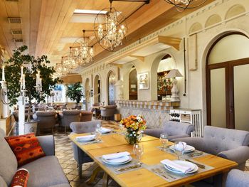 Чудесные интерьеры гостиницы. Большой выбор еды на завтрак, также есть вино и шампанское. Приветливый и хорошо обученный персонал
