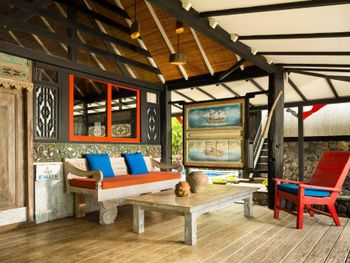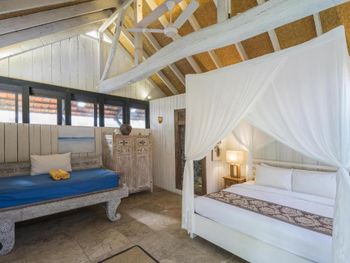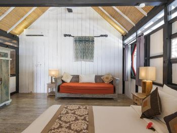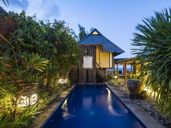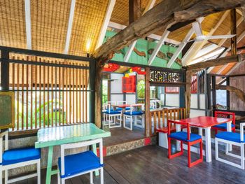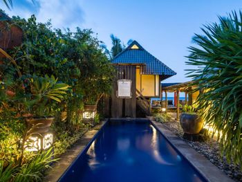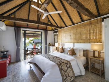 Оригинальный отель в японском стиле. Необычные номера, каждый индивидуален. В нашем номере была непривычная планировка, номер двухэтажный - внизу санузел, наверху спальня, лестница крутовата. Щели между досками, поэтому были комары (фумигатор не справлялся). Вкусные завтраки, приветливый персонал. Первая линия, море рядом. Нам организовали лодку для снорка, трансфер в следующий отель.