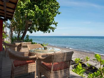 Мы брали три номера на три ночи. Все номера были и чистыми, и уютными, и комфортными. Красивая территория, потрясающая веранда для завтрака, обеда или ужина на берегу. Море - отличное, каменистый заход, но мы покупали тапки, так что, нам это не помешало. Отливы были незначительные, плескались в волнах по часу и даже больше и утром и вечером. При отеле есть кафе, вообще хочу выразить большую благодарность за отзывчивость, доброжелательность персонала. На Бали мы жили в Амеде, в Убуде и в Пемутеране и этот Отель вспоминаем, как лучший за поездку.