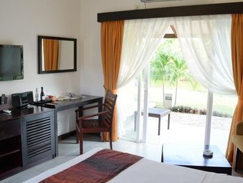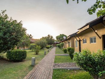 Расположение отеля на первой линии. Номера в одноэтажный домиках были очень комфортны. Река с крокодилами и птицами.