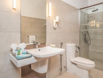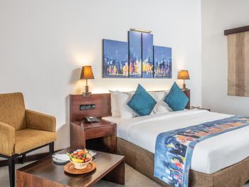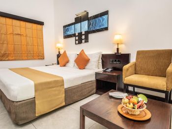 возможно, лет 5 назад, отель соответствовал своим 4 звездам, но сейчас, даже 3 звезды будет для него высшей похвалой. постельное белье с пятнами, полумертвые номера, полное отсутствие всего необходимого для проживания (зубные щетки, паста, халаты, тапочки). жил в отелях разного уровня в разных странах, но такого плачевного сервиса и качества предоставляемого жилья не встречал давно. при заказе пива и коктейля и на баре, который я сам дождался и забрал, берут 1000 рупий в качестве клиентского сбора))) еще и не принесли половины сдачи (отдали после того, как на калькуляторе им показал сумму).