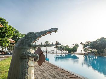 Изюминка отеля - крокодил Гена который живёт в заболоченной части реки; где обитает целая крокодилья семья. На закате обычно они курсируют по реке и иногда проплывают под мостом. Видели, как туристя подкармливали маленького крокодильчика. Также на реке много цапель и разных птиц. Очень интересное место! В ресторане понравились супы, всегда было что выбрать на ужин. Отличный биллиард. Пляж напротив отеля практически без кораллов (совсем немного в самом начале на дне), однако, если идёшь по пляжу направо, их становится значительно больше. The cricodile is a celebrity of this hotel. The family of crocodiles habits in the swampy parts of the river. While sunset, one can see the crocodiles swimming under the bridge. We saw how tourists were feeding the small crocodile. There are also herons and other ontrresting birds living in the bushes alongside the river. The place keeps natural habitant and it is surrounded by nature, so it has a lot of space and it is very interesting for nature lovers. There was always a good choice of meal, but we liked soups more. There was also a good pool table in the bar. The beach in front of the hotel is the first beach almost without the corals (only a small amount of them in the very beginning). If you go to the right, there are a lot of them.