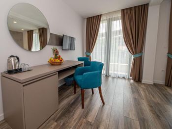 Нам очень понравилось в отеле Амфора! Нам предложили люкс вместо забронированного номера за ту же цену. Очень уютный отель, в местах общего пользования красиво чисто и аккуратно, есть разные милые детали которые привлекают глаз. Хороший теплый бассейн. Персонал очень доброжелательный, при заселении нам предложили приветственные напитки. Когда мы принесли арбуз в номер, нам его порезали. Номер тоже понравился, свободный, уютный, ремонт и сантехника все новое.