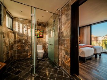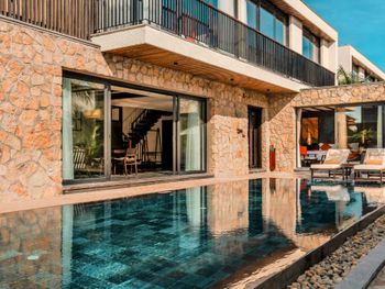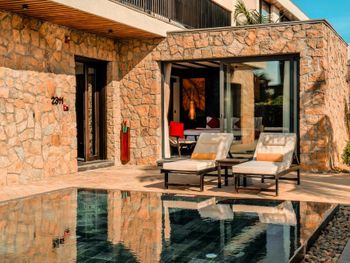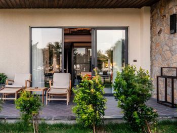 Очень приятное место для отдыха. Атмосфера полностью расслабляющая, всё в духе спа-отеля — спокойно, уютно, ничего лишнего. Интерьер в стиле минимализм, всё новое и чистое, видно, что отель только открылся. Море рядом — буквально несколько шагов, пляж аккуратный, с хорошими лежаками. Три бассейна: один с морской водой, один тёплый, один горячий — можно выбрать под настроение. Особенно классно, что разрешают купаться вечером, когда всё подсвечено и вокруг тишина — невероятно расслабляет. В отеле играет мягкая фоновая музыка, в номерах — аромалампы с приятными маслами, всё продумано для полного релакса. Огромные белоснежные кровати — просто сказка, бельё свежайшее, идеальное. Питание отличное — вкусно, оригинально, чувствуется, что продукты хорошие и подача на уровне. Номера просторные, красиво оформленные, ванная комната просто роскошная. С балкона открывается потрясающий вид на море. Отель создаёт ощущение гармонии и покоя. Всё новое, современное и с отличным вкусом. Место, где действительно отдыхаешь и телом, и головой.